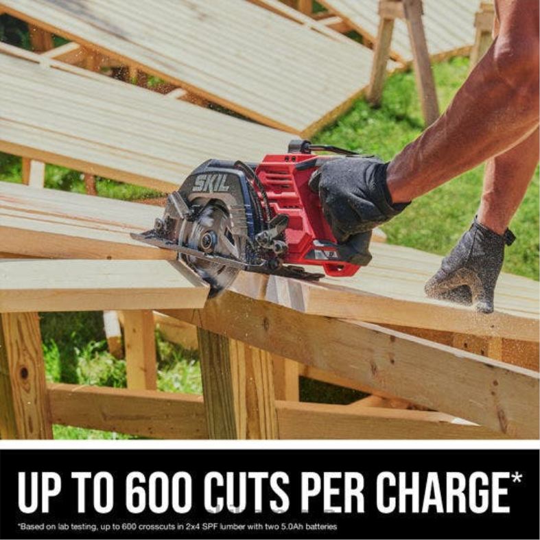 putere extremă. performanță extremă. ferăstrăul circular cu mâner spate skil pwrcore 20 xp fără perii de 7-1/4 inch este dotat cu o putere de 40 V datorită a două baterii litiu-ion pwrcore 20 de 5,0 Ah cu tehnologie brevetată care oferă timp de funcționare cu 25% mai lung și până la 600 de tăieturi per încărcare! preluați lucrări solicitante și decupați cheresteaua de trei ori într-o singură trecere cu sistemul inteligent de gestionare a puterii al motorului fără perii, care oferă 5.300 rpm pentru performanțe extreme de tăiere. în plus, obțineți tăieturi netede și precise cu lama cu vârf de carbură de 24 de dinți inclusă. profitați de caracteristicile versatile, inclusiv un port de praf adaptabil pentru a direcționa rumegușul departe de zona de lucru, o lumină LED, cârlig pentru căpriori și crestătură de prindere încorporate și capacitate de teșire 0-53 pentru a tăia o varietate de unghiuri. toată această putere de calificare și performanță este susținută de o garanție de 5 ani, lider în industrie. deci, haide, duce-o la extrem. este un ferăstrău.